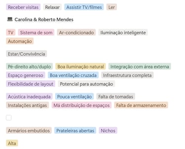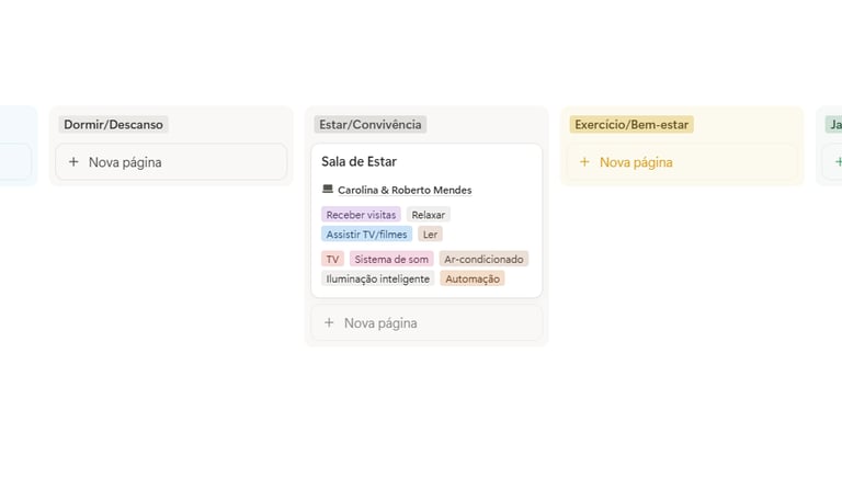 Detalhamento ambiente por ambiente com mais de 45 opções inteligentes: funções, atividades e equipamentos.
